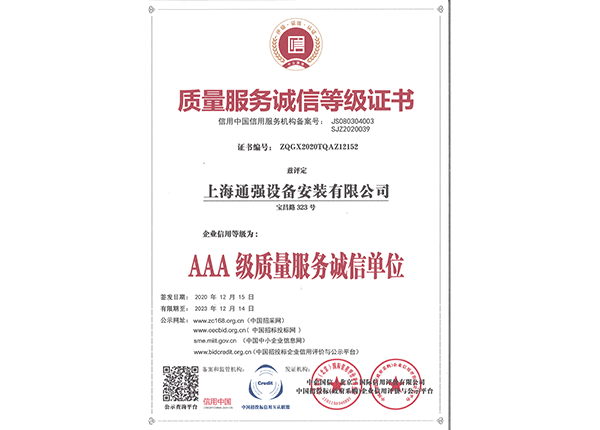 上海通強設備安裝有限公司注冊資金2000萬元,資產總量為100000萬元的專業(yè)設備安裝公司,公司專業(yè)從事工業(yè)與民用建筑的設備安裝、非標設備的制作、鋼結構制作安裝、中央空調系統(tǒng)的安裝,水電及管道的安裝。經(jīng)過20多年艱苦創(chuàng)業(yè)現(xiàn)已成為一個具有國家二級安裝資質,獲得上海市“重合同,守信用”的施工單位。